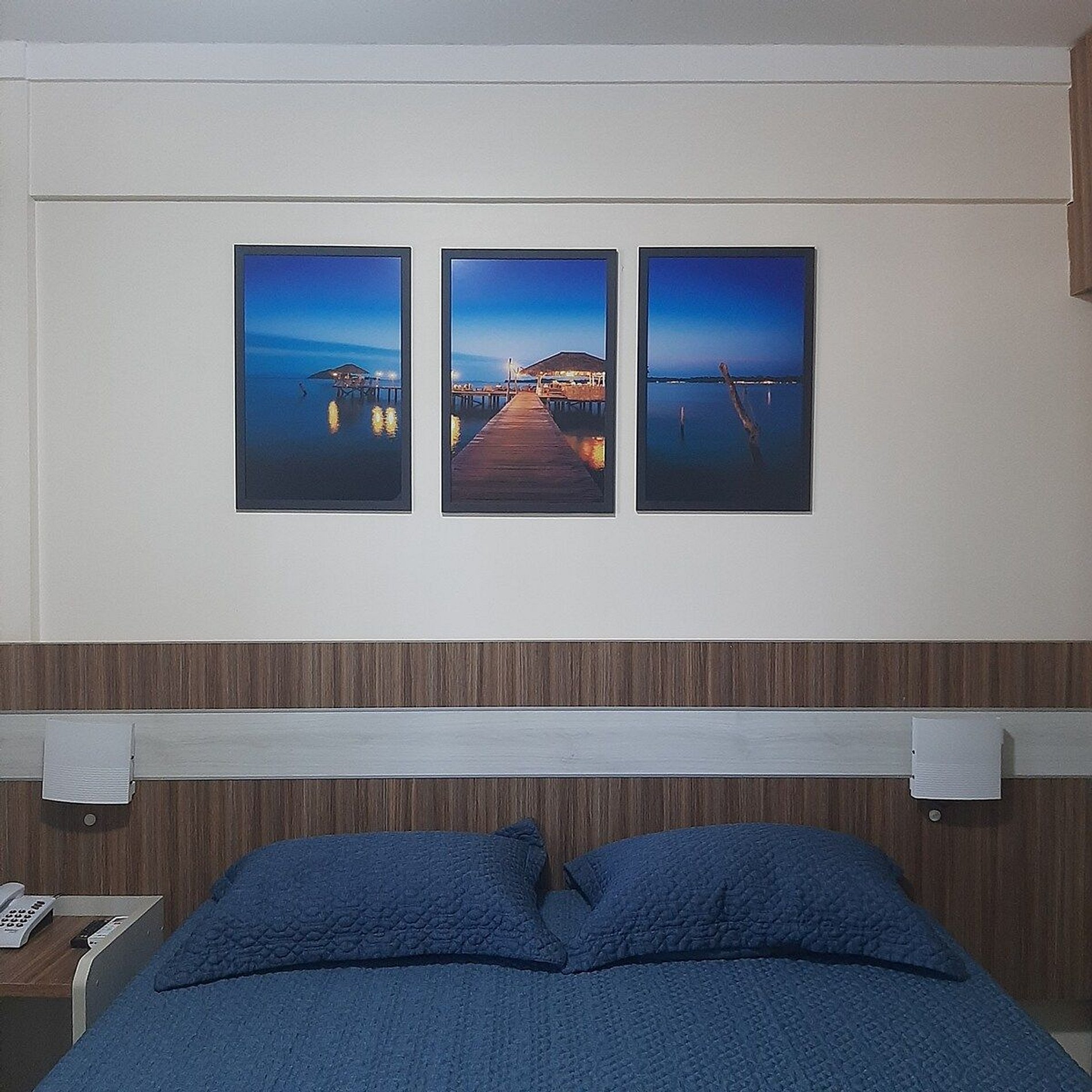 * Quarto de casal com cama Queen size (2 pessoas) com TV com 32", Ar condicionado, cofre, ferro e tábua de passar roupas.