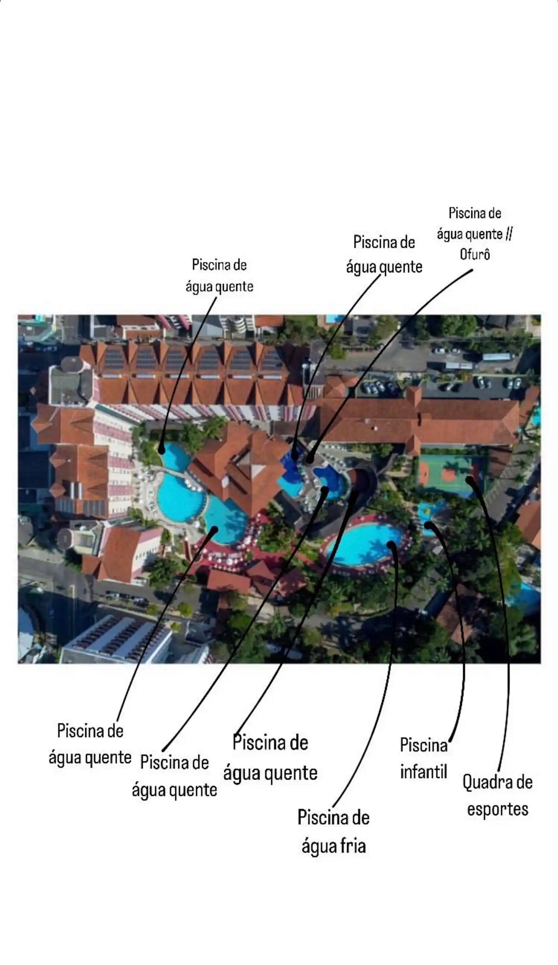 O Hot Springs Hotel tem Parque Aquático com Piscinas de águas quentes e frias incluso na diária (o das fotos do anúncio), contém: