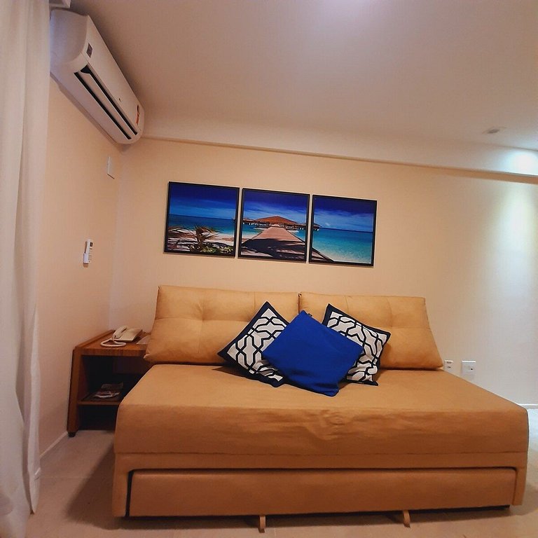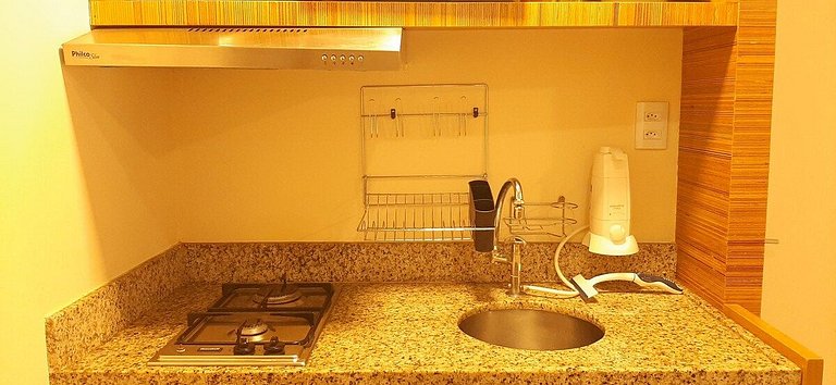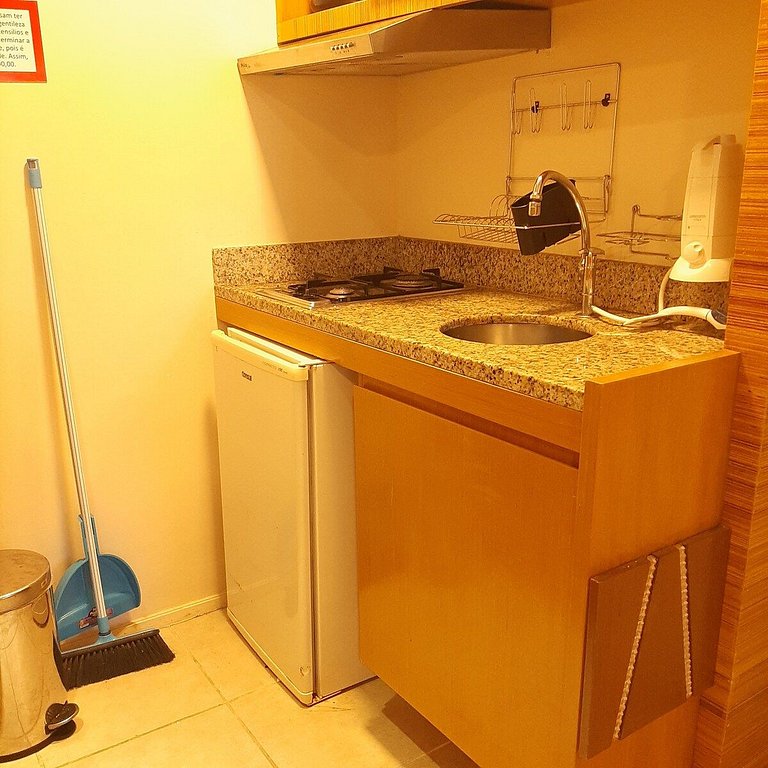 Este apartamento completo com cozinha equipada, sala, quarto e banheiro será a sua confortável casa, localizada em um hotel administrado pela Accor com garagem, piscina reaberta, academia, Wi-fi, sauna e funcionários super atenciosos.